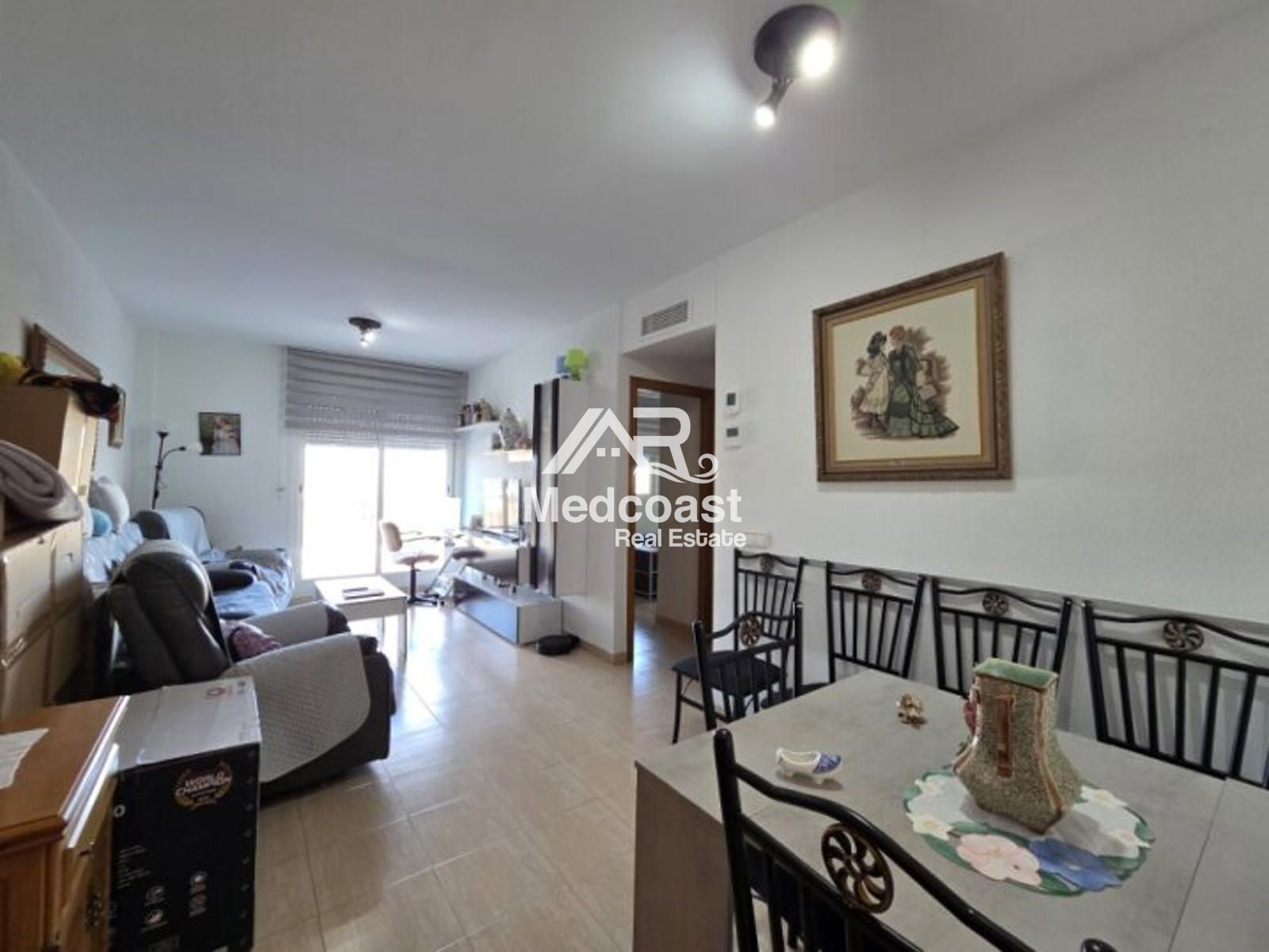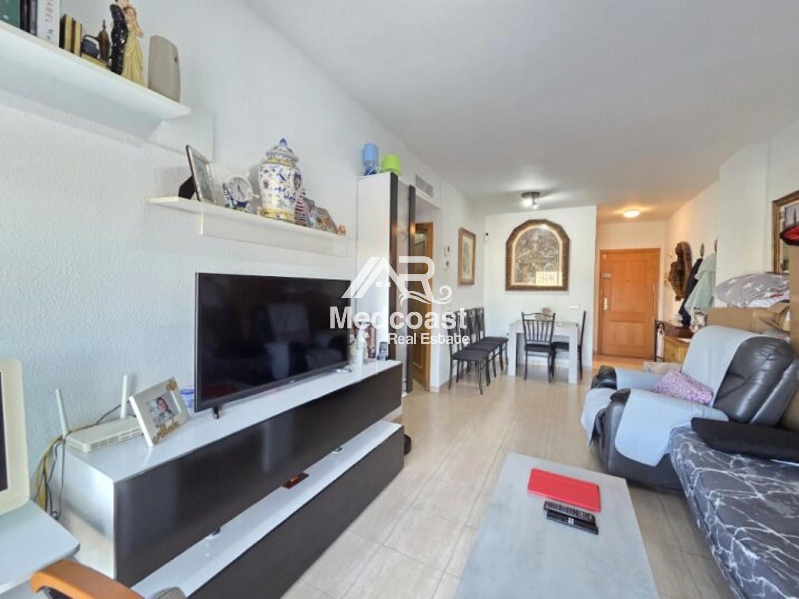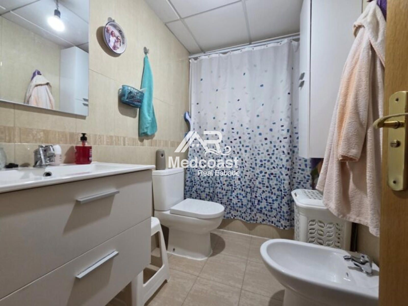 Se ofrece acogedor apartamento en planta baja, con 58 m² construidos, ideal tanto como vivienda habitual como inversión. La propiedad se distribuye en dos habitaciones amplias, un baño completo con bañera, amplio salón-comedor muy luminoso y una cocina independiente que cuenta con lavadero. Dispone además de aire acondicionado instalado, lo que garantiza confort durante todo el año.