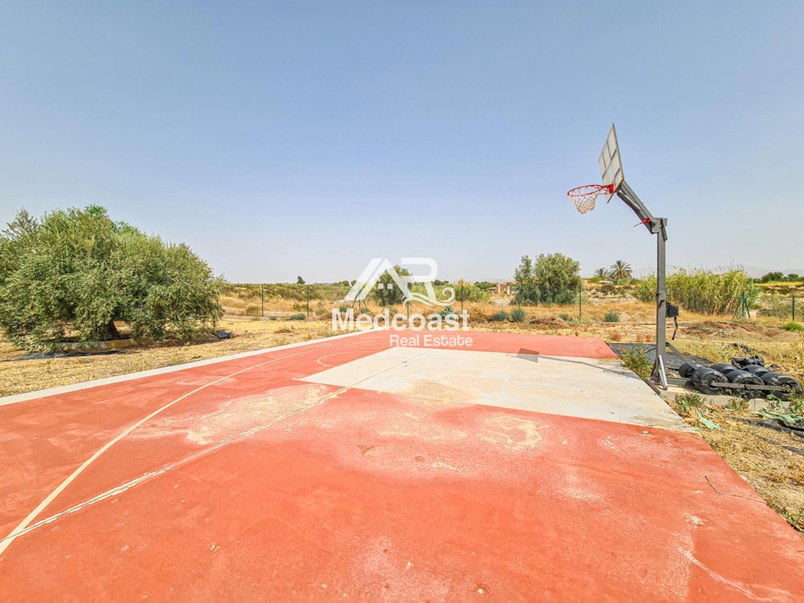 En el exterior, la parcela está completamente vallada y cuenta con puerta de acceso motorizada. Además, ofrece excelentes zonas de ocio y servicio como perreras, lavadero, habitación trastero, baño exterior para la zona de piscina, barbacoa, pista de tenis y una fantástica piscina privada.