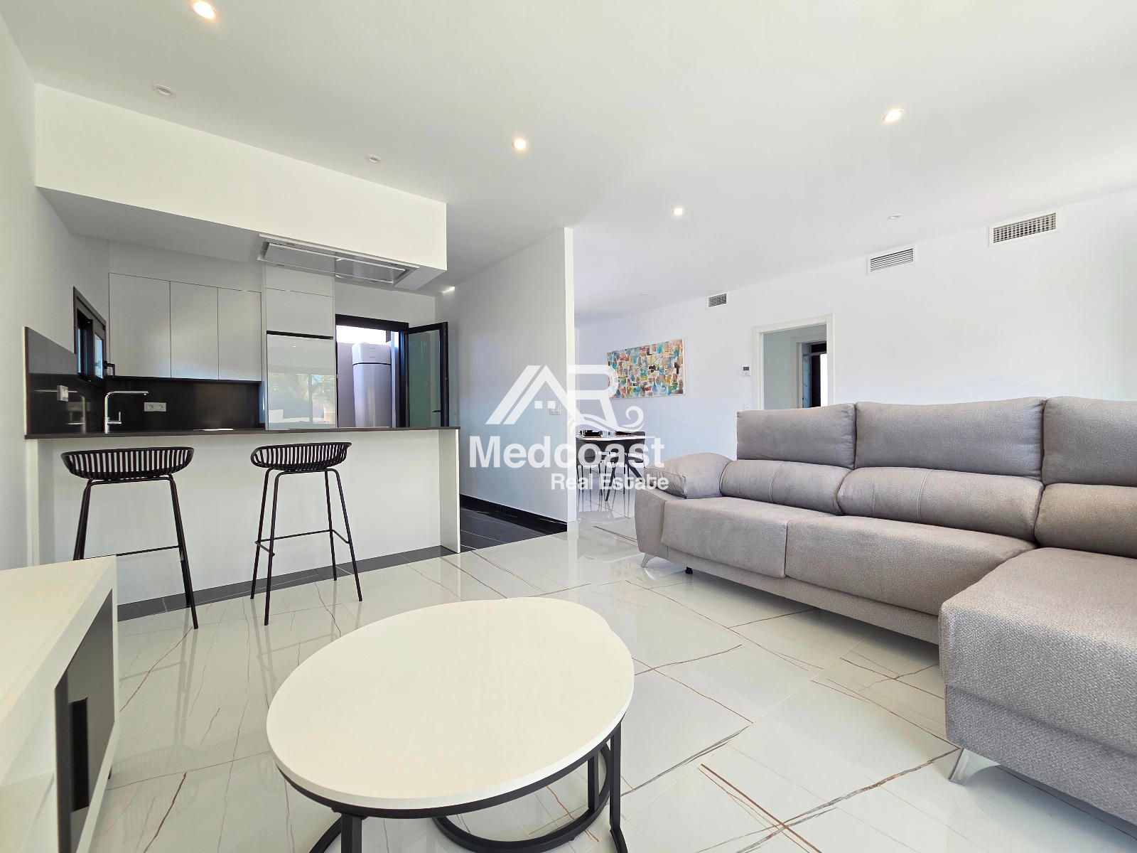 La vivienda dispone de 107 m² construidos, distribuidos en un luminoso y amplio salón-comedor gracias a sus grandes ventanales, una cocina moderna integrada, lavadero independiente, dos amplios dormitorios con posibilidad de habilitar un tercero, y dos baños completos. En el exterior destaca una gran terraza con zona ajardinada, perfecta para relajarse, tomar el sol y disfrutar de las impresionantes vistas abiertas al campo y a las montañas.