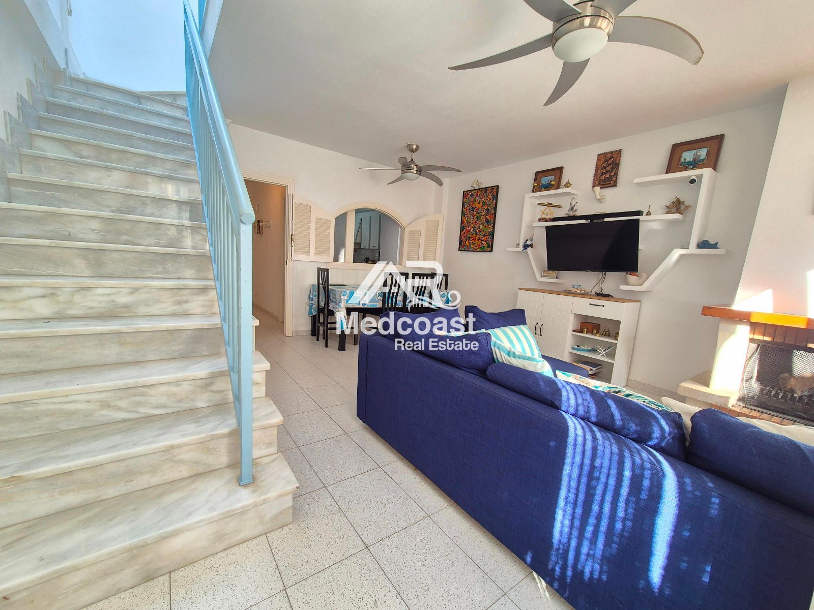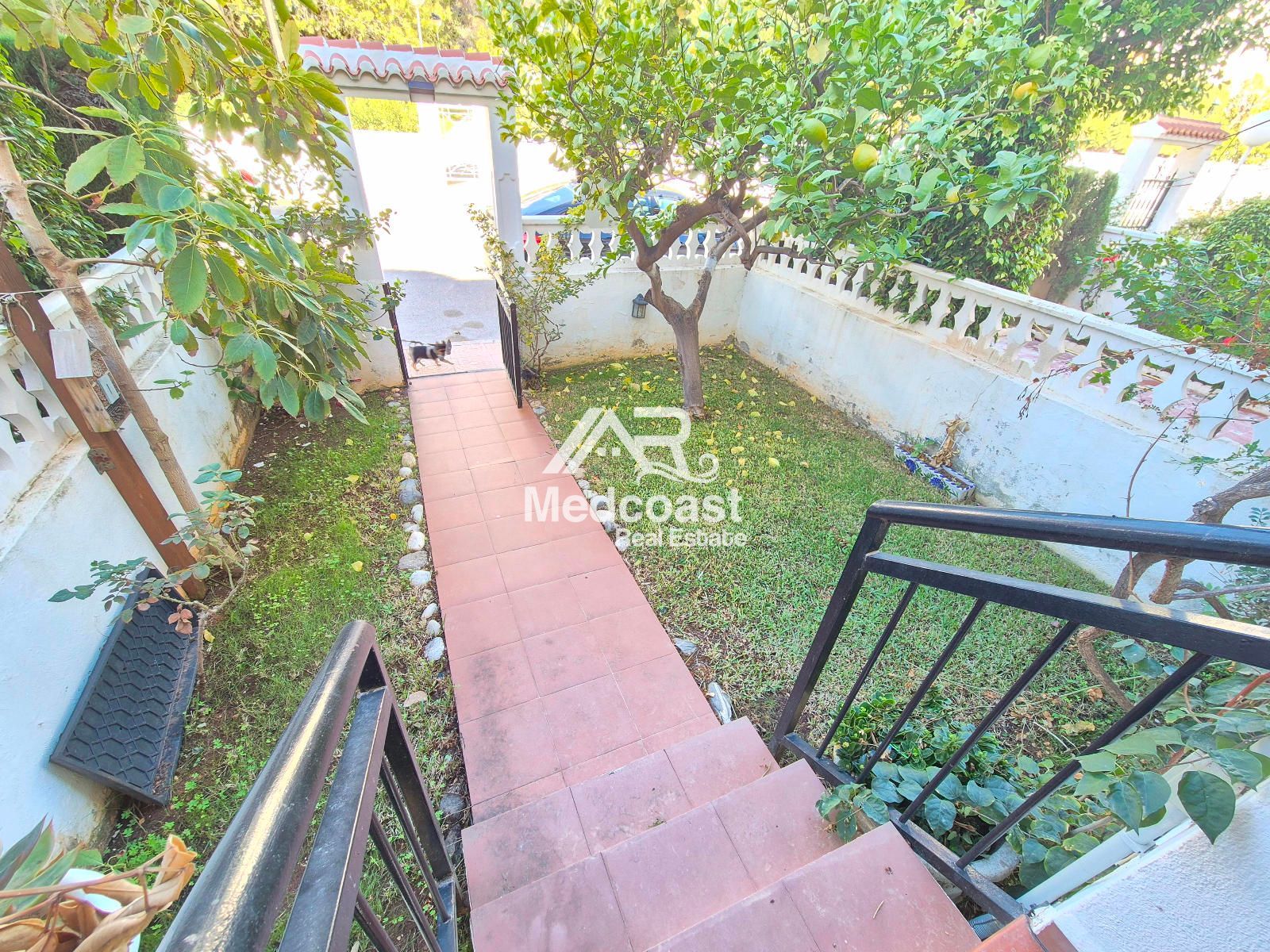 En la planta baja se encuentra un acogedor recibidor que da paso a un amplio salón-comedor con chimenea, así como a una cocina totalmente equipada y un baño completo. Desde esta planta se accede a una terraza trasera de 23 m², con barbacoa de obra, ideal para disfrutar al aire libre. Unas escaleras conectan directamente con los jardines comunitarios y la piscina, ambos en excelente estado de mantenimiento. En la parte frontal de la vivienda, un jardín privado de 24 m² permite el acceso desde la calle.