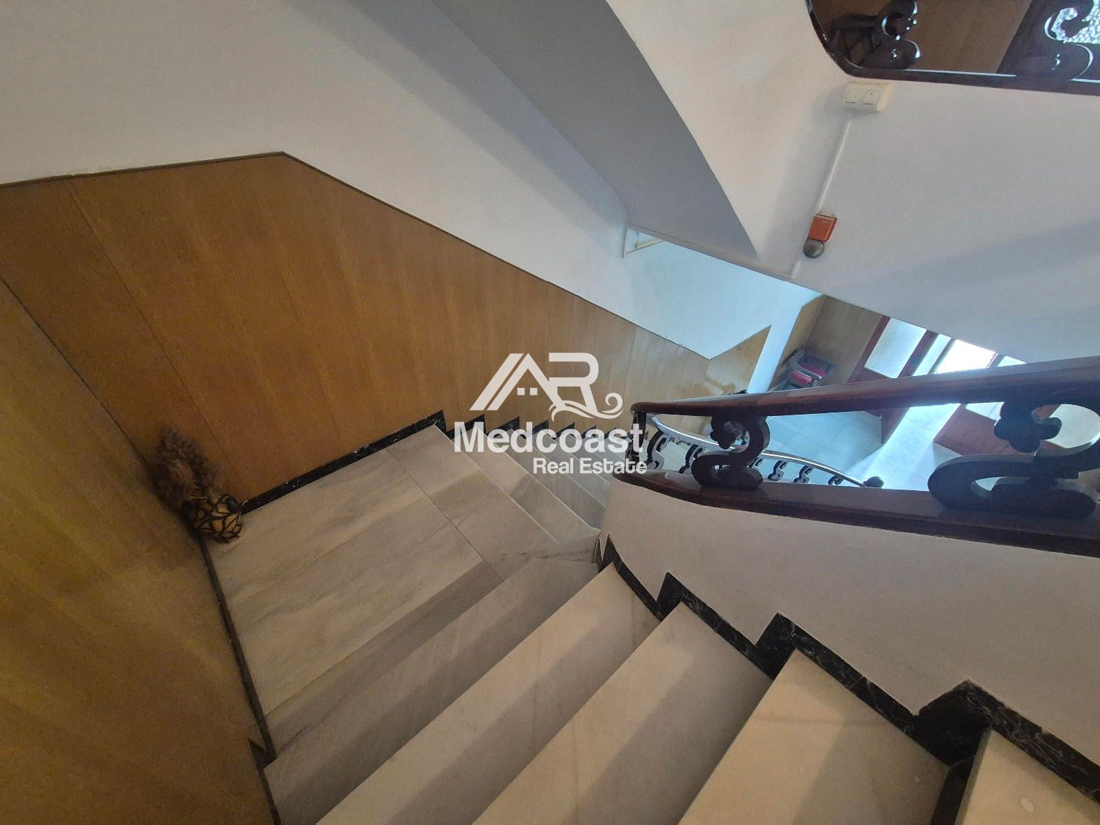 Amplio recibidor con una escalera de diseño, cuidadosamente elaborada con materiales de gran calidad y un gusto exquisito, que marca el carácter distinguido de la vivienda.