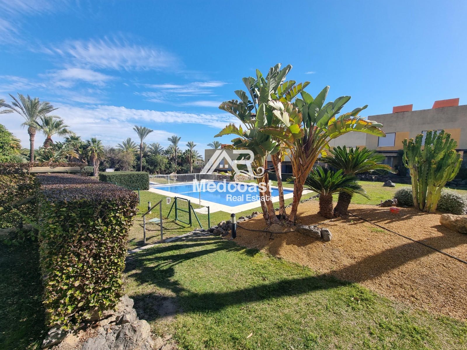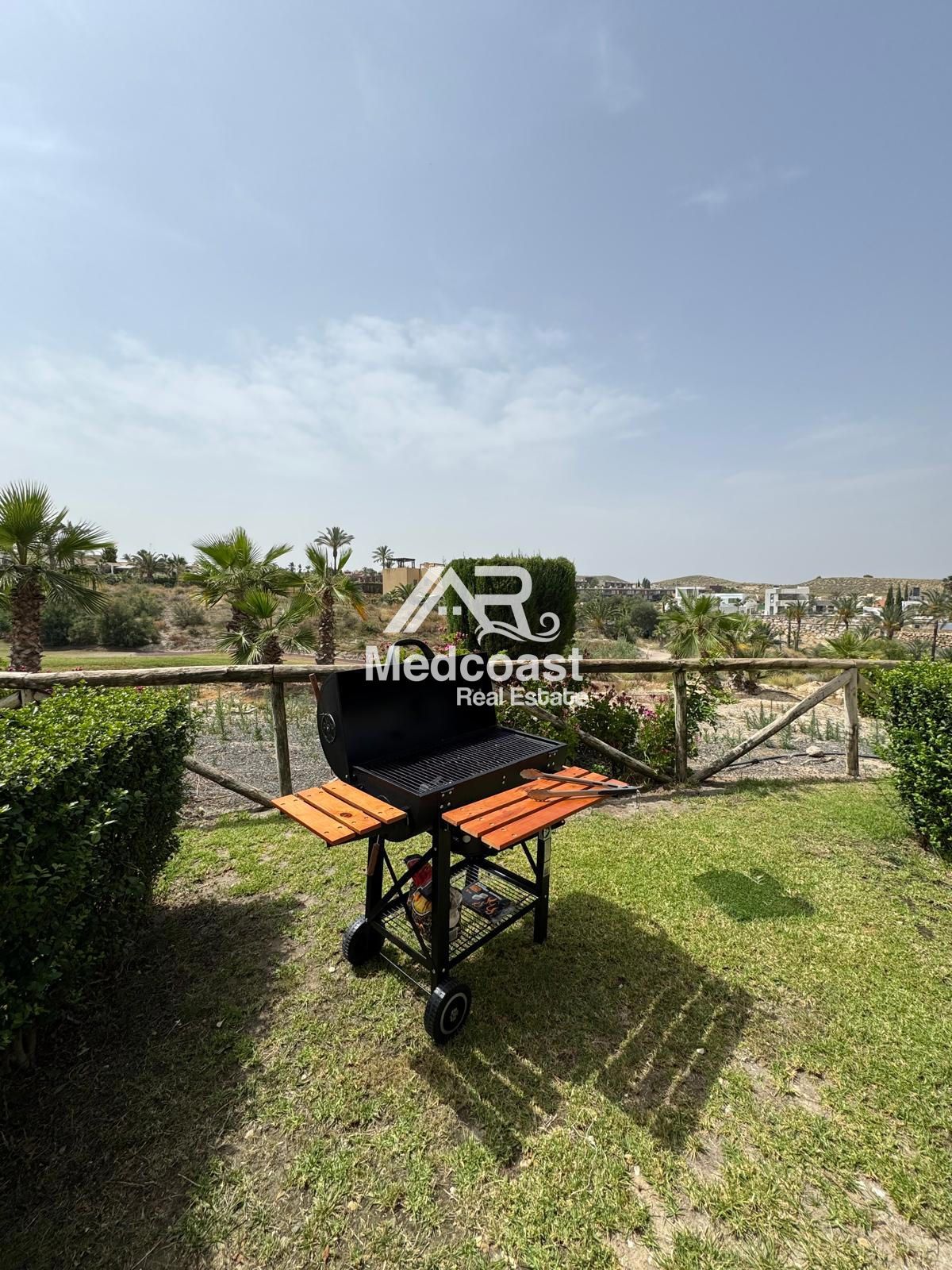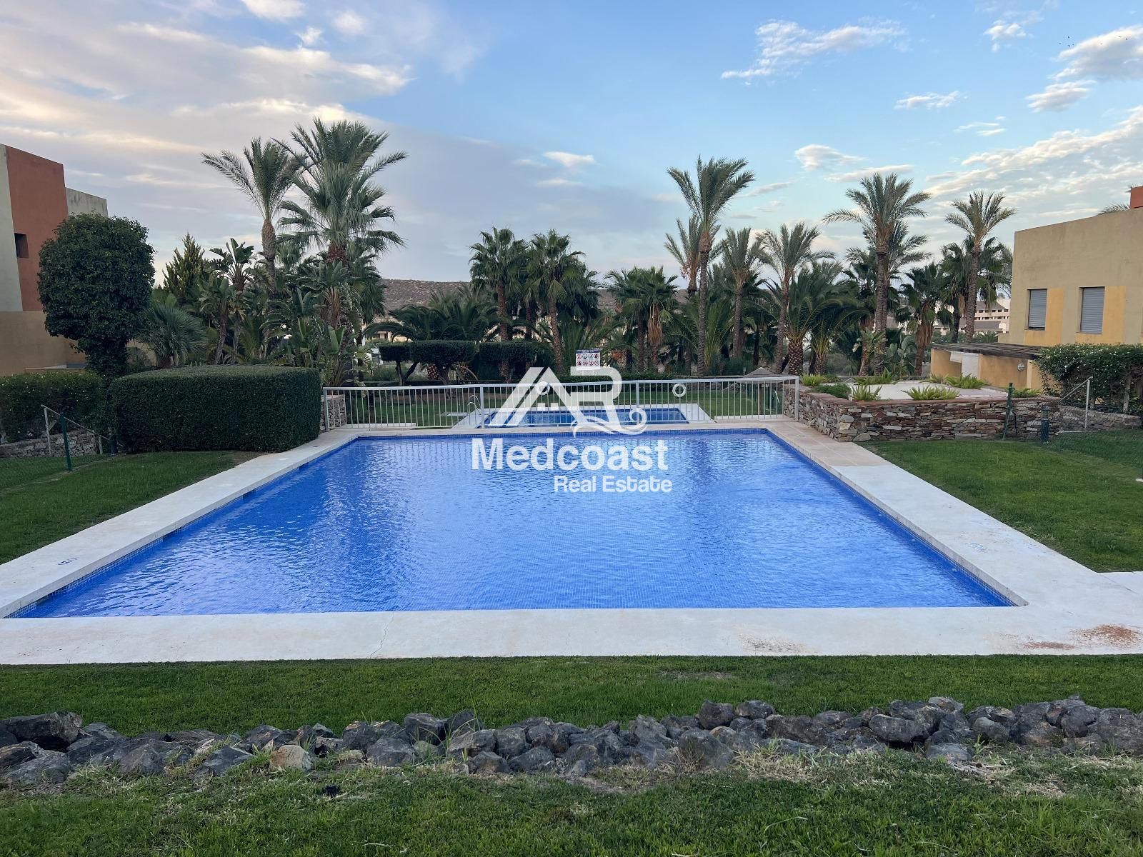 El complejo Palmera Golf ofrece excelentes instalaciones: amplias y cuidadas zonas ajardinadas, piscina comunitaria y pista de tenis, creando un entorno ideal tanto para residencia habitual como para inversión en alquiler turístico.