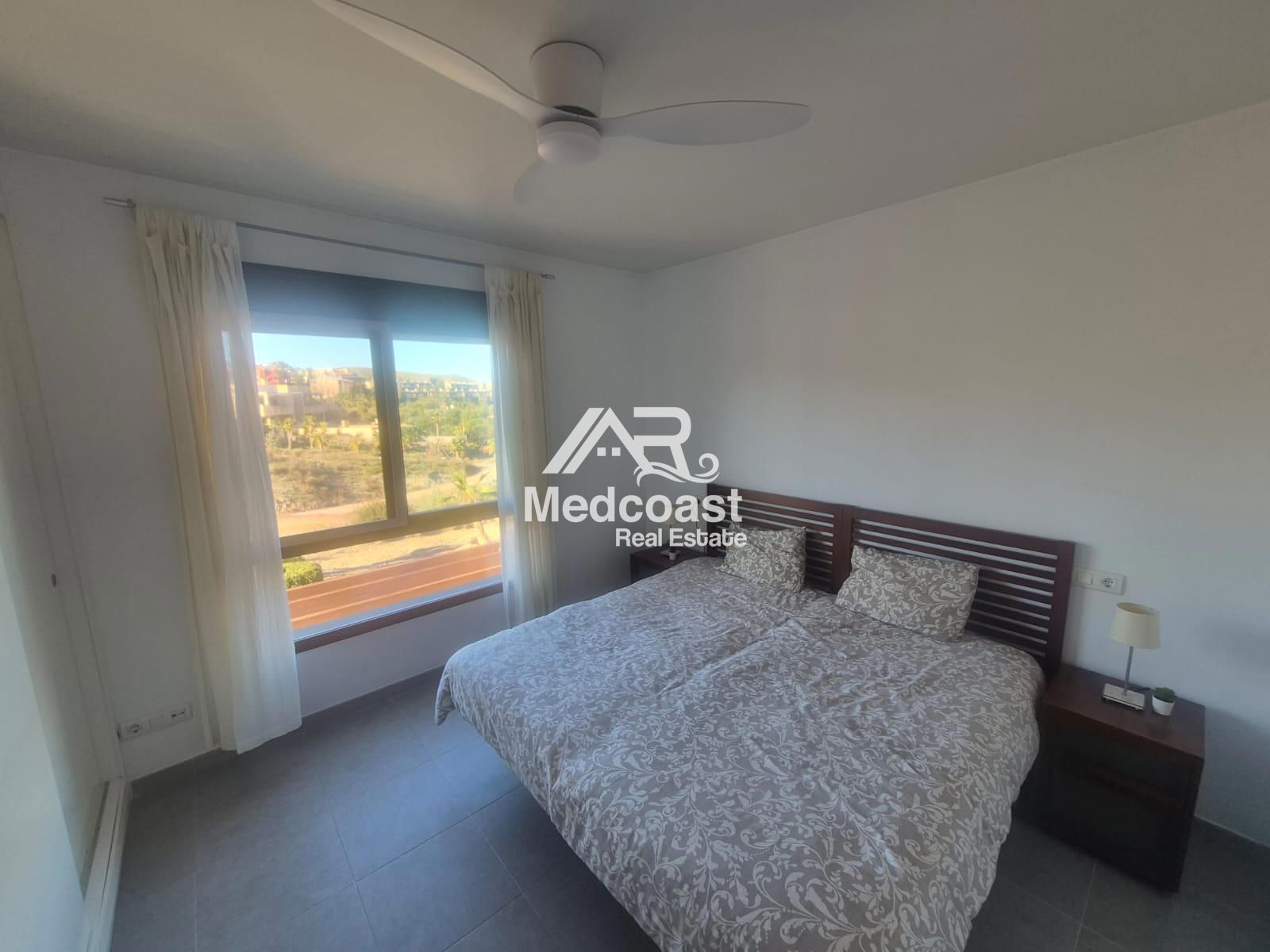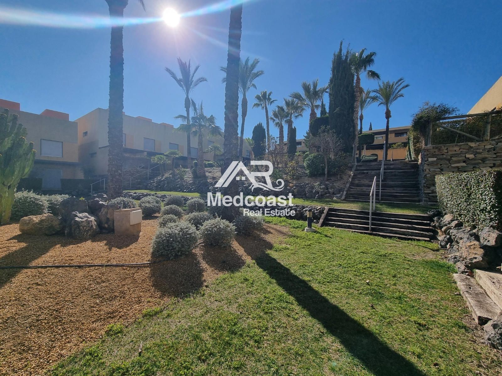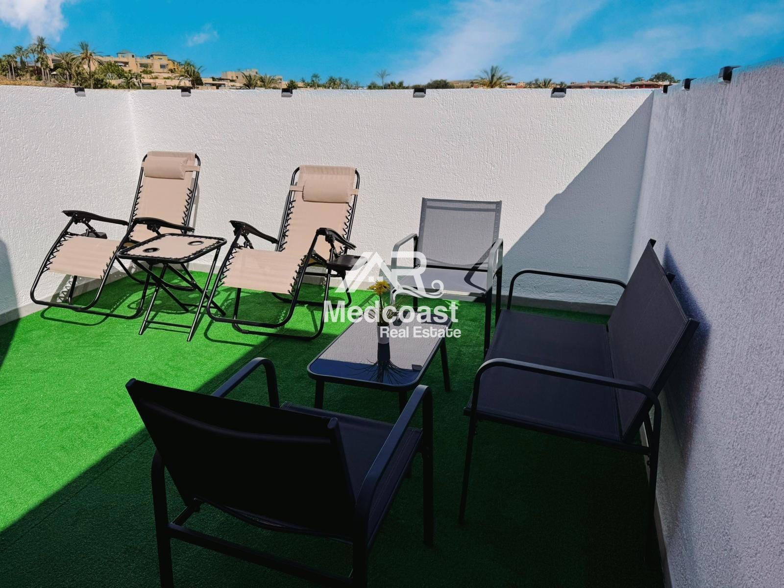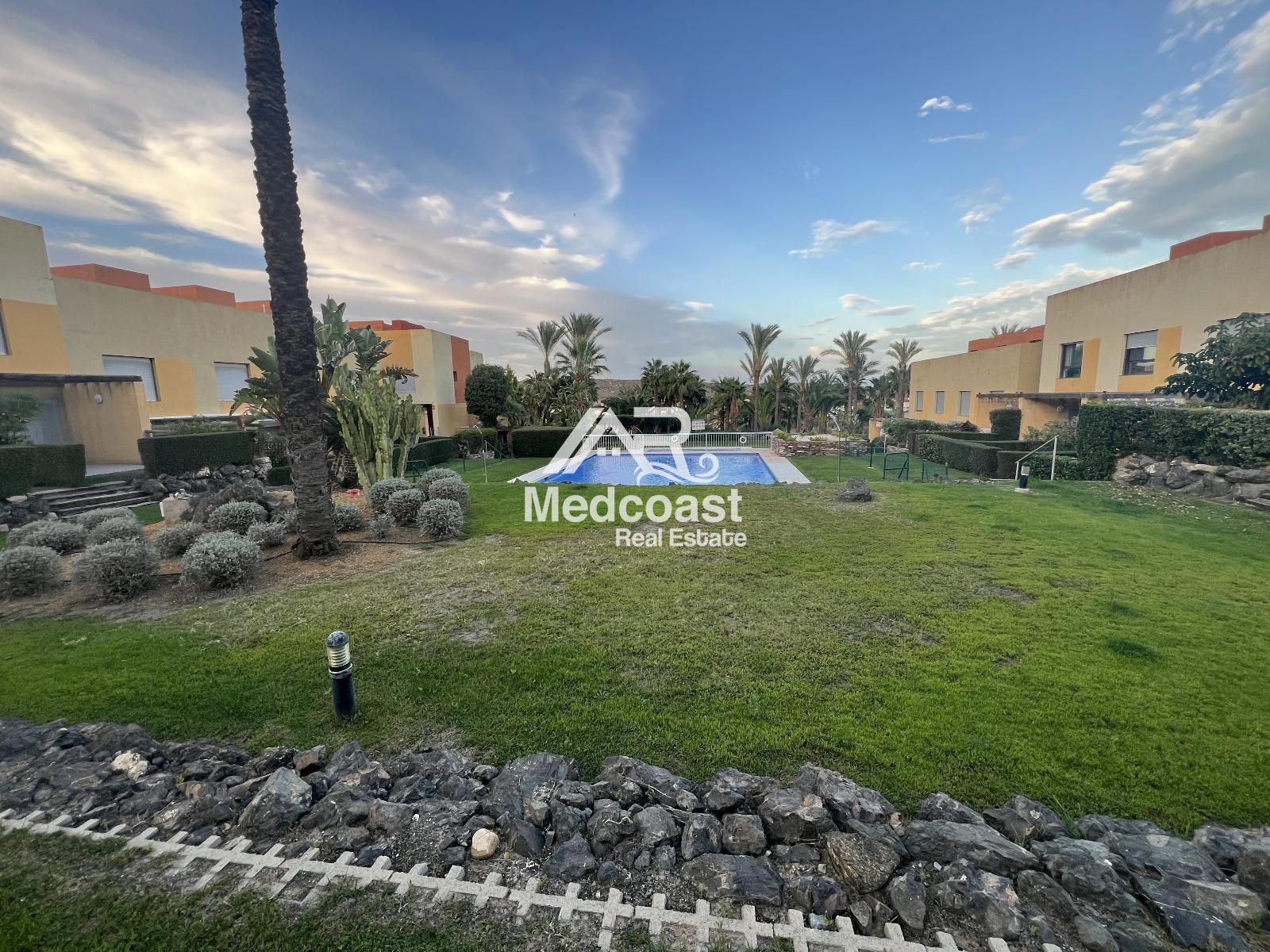 El complejo Palmera Golf ofrece excelentes instalaciones: amplias y cuidadas zonas ajardinadas, piscina comunitaria y pista de tenis, creando un entorno ideal tanto para residencia habitual como para inversión en alquiler turístico.