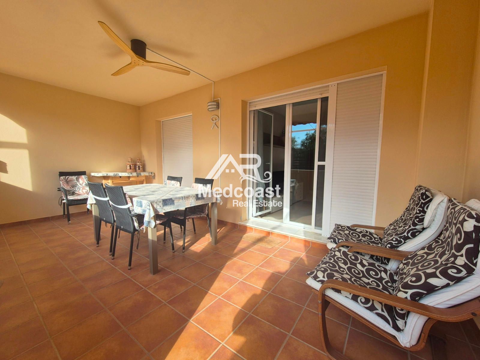 La propiedad dispone de 2 amplios dormitorios con armarios empotrados, 2 baños completos, y un luminoso salón-comedor con cocina integrada. Además, cuenta con dos terrazas privadas (una delantera y otra trasera), perfectas para disfrutar del clima mediterráneo durante todo el año.